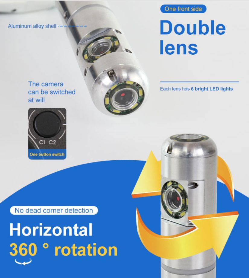 B0 22 mm dubultkamera rūpniecisko cauruļu pārbaudei un dažāda garuma kabeļiem